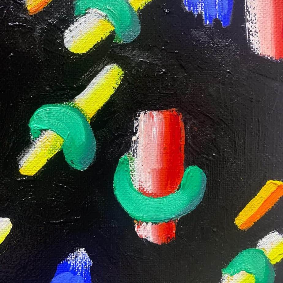 These are painted sketches on leftover canvas — fast arrangements that land somewhere between pattern and figure. Because they begin on scraps, they stay light, provisional, and experimental. I use them to test marks, color stacks, and small systems before they show up in larger works.