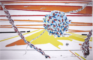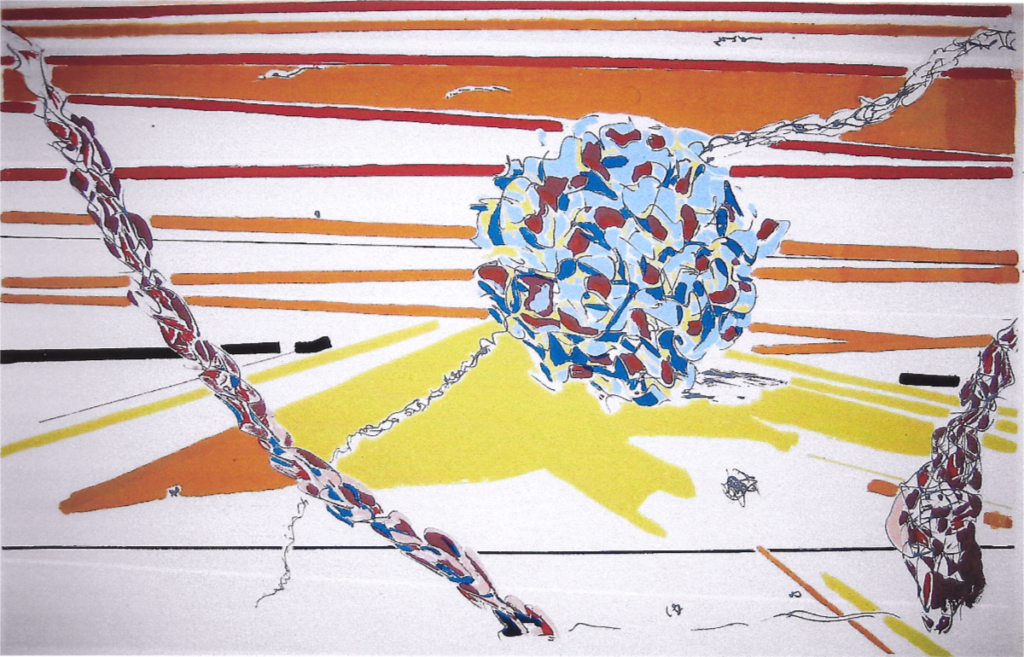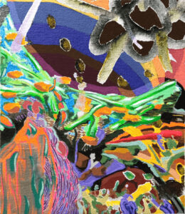 This group comes out of looking at biological systems, cables, cords, and growth patterns — things that braid, knot, or multiply. Early on I was interested in how something synthetic could still feel alive. These paintings mix biomorphic forms with a distinctly constructed color sense, so the image feels both engineered and breathing.